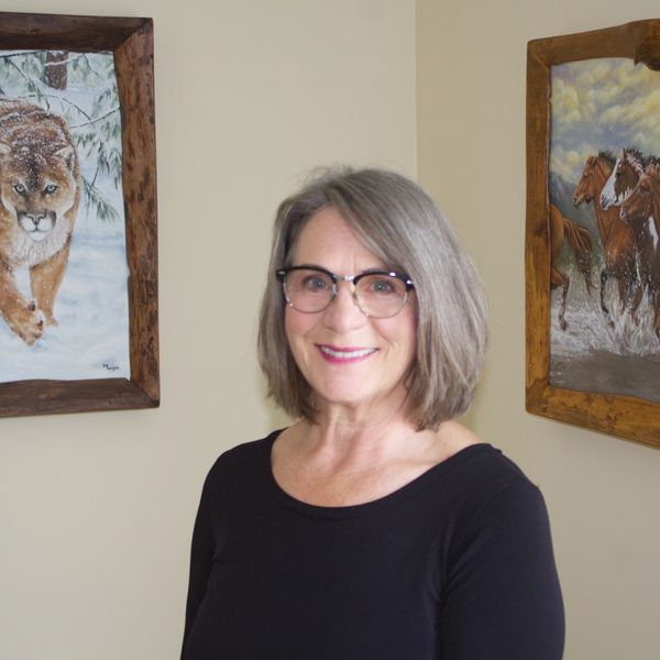 Sheila Swayze is a self-taught artist whose work draws deep inspiration from the awe-inspiring landscapes and wildlife of Creston, British Columbia, where she now resides. Originally from Ontario, Sheila moved to the west coast in her 20s, and the breathtaking beauty of the mountains and nature has since become a constant source of creative energy. Her love for animals and the natural world fuels her artistic vision, infusing her paintings with a sense of connection and wonder. Although Sheila has only recently turned her full attention to painting, creativity has always been a central part of her life. Sheila enjoyed a successful career as a costume designer for competitive figure skaters, where she further honed her eye for colour, detail, and design. Sheila expertly captures the essence of animals, using vivid colours and bold brushwork to transport viewers into the wild realms she loves. Through her work, she invites others to experience the beauty, strength, and vulnerability of the creatures she portrays, offering a window into their world